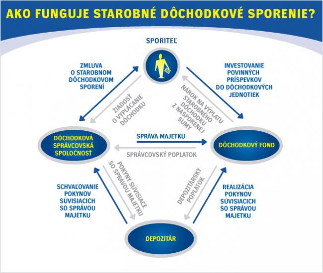 Starobné dôchodkové sporenie predstavuje kapitalizačný , tzv. II. pilier dôchodkového systému, ktorý je príspevkovo definovaný. To znamená, že výška dôchodkovej dávky bude závisieť od zaplatených príspevkov do II. piliera a ich zhodnotenia. Finančné prostriedky sporiteľov spravujú dôchodkové správcovské spoločnosti (DSS) .